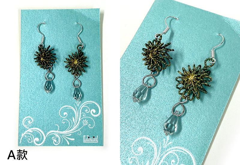 傳統造型圓仔花語意圓滿有福,搭配精緻水晶製作成耳飾,優雅輕奢點綴。