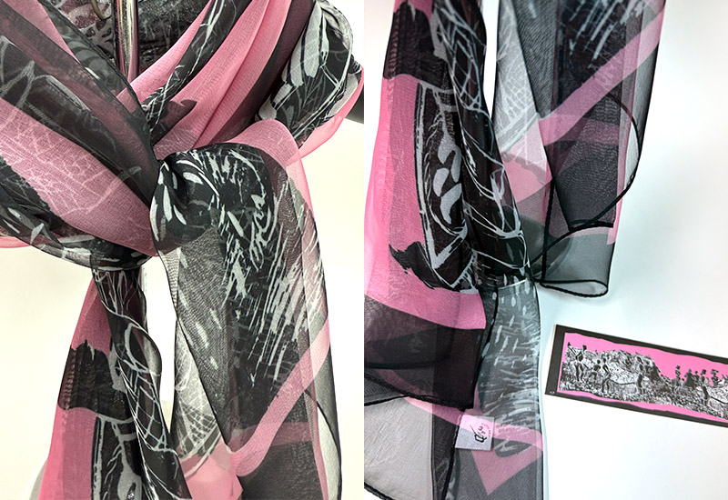 呦呦 楊英風 青果市場絲巾(粉) 台灣美術藝術 雕塑插畫 台灣製 送禮 居家用品