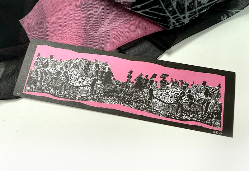 呦呦 楊英風 青果市場絲巾(粉) 台灣美術藝術 雕塑插畫