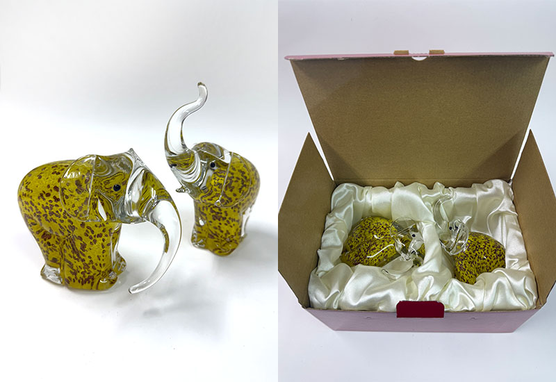 玲瓏窯玻璃 吉象成雙-黃金 大象 玻璃擺飾