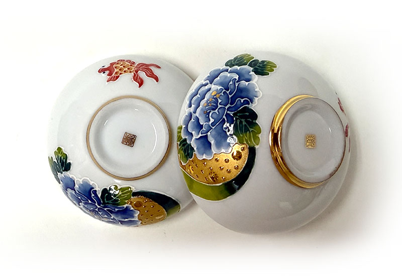 對杯以牡丹象徵富貴華麗,搭配金魚寓意年年有餘,吉祥富足,傳遞圓滿與喜慶