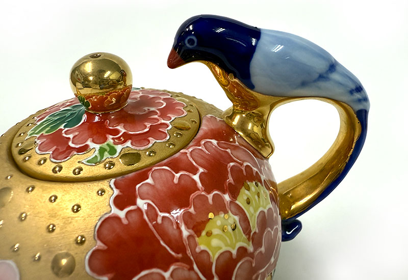 美湛雲瓷 富貴圓滿藍鵲壺組 一壺2杯茶具組 鎏金法華彩 鶯歌燒 台灣藍鵲茶壺 Taiwan Blue Magpie