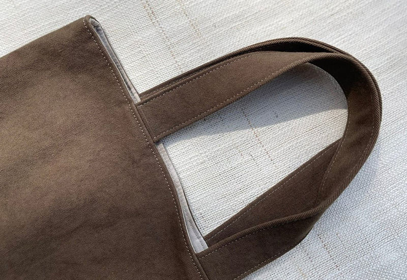 輕巧而攜帶方便的圓角造型提袋,可雙面使用,素面配色與質感紋樣搭配,可依喜好來變換