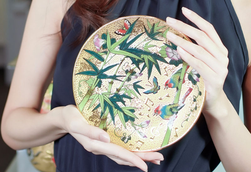 G14花鳥音符金盤 圓盤 鎏金盤 盤子 餐盤 plate