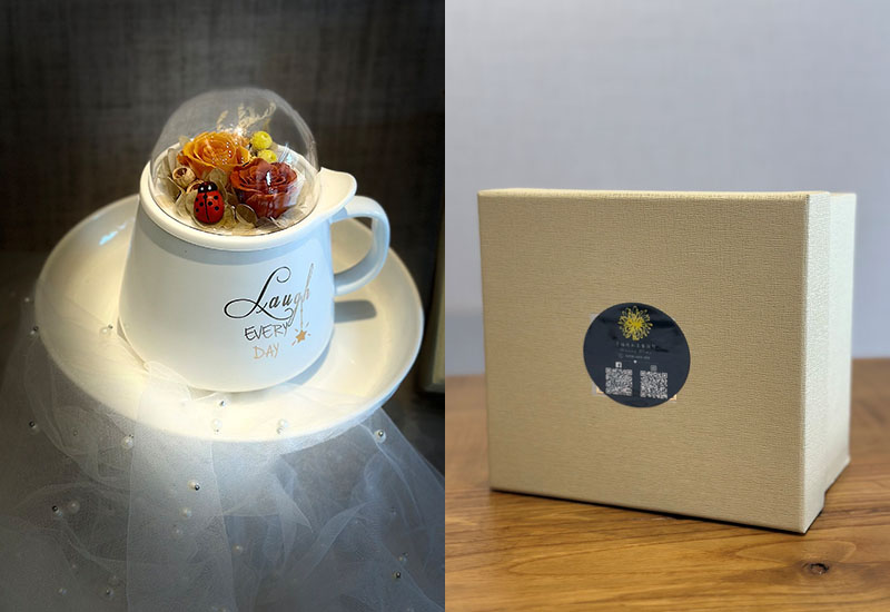 材質:陶器杯子、永生玫瑰、永生繡球花