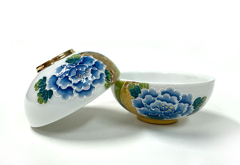 對杯以牡丹象徵富貴華麗,搭配金魚寓意年年有餘,吉祥富足,傳遞圓滿與喜慶